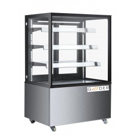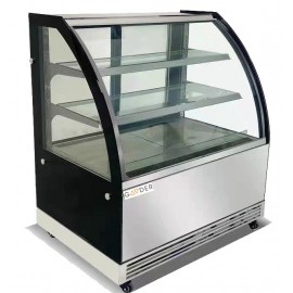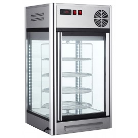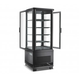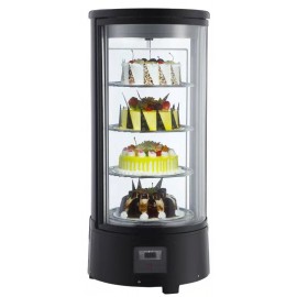 Вітрина холодильна GoodFood RTC72LПризначена для демонстрації кондитерських виробів.Об'єм камери 72 л.Корпус - пластик.Колір - чорний.Випуклі двері.Подвійне скло.У компекті 4 полиці, що обертаються.Двостороннє бокове світлодіодне (LED) підсвічування, хромовані полиці, цифрова панель управління.Відстань між полицями 160 мм.Циркуляція холодного повіт..