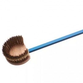 Щітка напівкругла для чистки печей для піци - Щітка поворотна напівкругла зі скребком - Щітка замінна - Розмір щітки: 170х130 мм - Довжина ручки: 1550 мм Матеріал: - щетина: мідь - основа: дерево - ручка: анодована, колір синій..