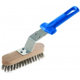 Щітка для чищення печей - Загальна довжина: 1600 мм Щітка: - Повертається прямокутна зі скребком - Замінна - Натуральна щетина - Основа деревяна - Розмір: 200мм x 60мм x 105мм Ручка: - Анодована синя..