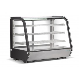 Вітрина холодильна GoodFood RTW250L5 нержавіюча сталь Настільна кондитерська холодильна вітрина з двома полицями.Призначена для демонстрації кондитерських виробів.Корпус чорний - скло та пластик зі сталевою вставкою.Подвійний склопакет.Розсувні двері ззаду.Об'єм 268 л.Верхнє світлодіодне (LED) підсвічування.Хромовані полиці.Цифрова панель управлінн..